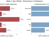 The first week of the season provided a challenging test for our predictive model. While many games aligned with expectations, 70 of the completed matchups produced results contrary to predictions. The largest errors tended to involve teams with limited historical data or significant roster changes, highlighting the difficulty of early-season forecasting when team identities remain unclear.
