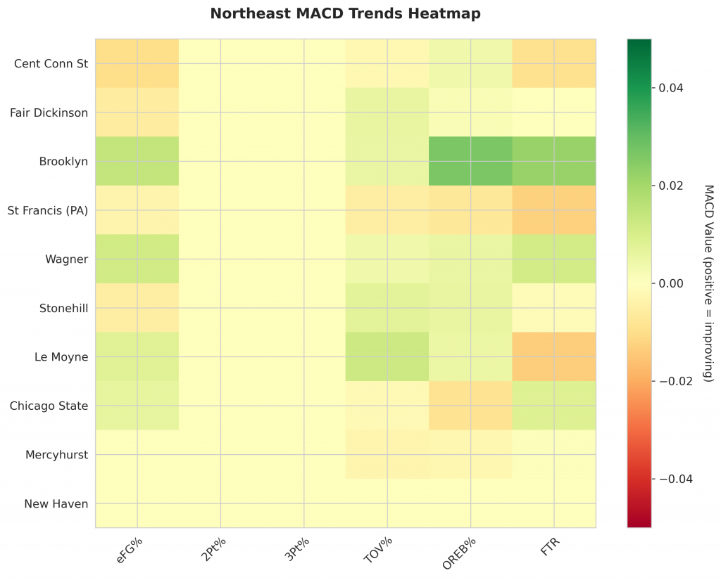 As Northeast teams continue their season, the MACD trending indicators will help identify which teams are genuinely improving versus those riding unsustainable momentum. Check back next week for updated analysis.