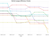 - Trending Down (Efficiency): Appalachian St, Arkansas State, C. Carolina, Georgia State, Louisiana