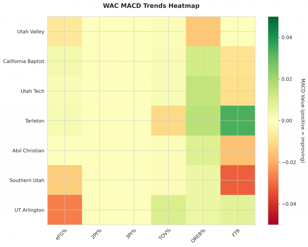 As WAC teams continue their season, the MACD trending indicators will help identify which teams are genuinely improving versus those riding unsustainable momentum. Check back next week for updated analysis.