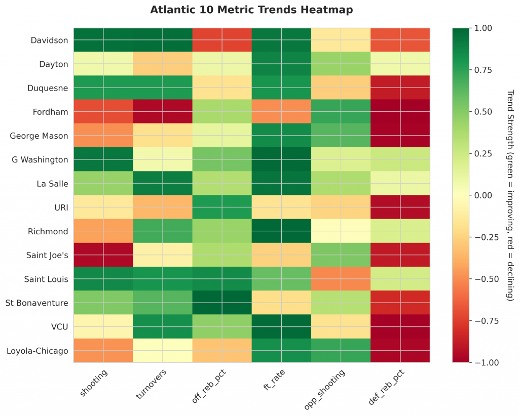 - Trending Up (Efficiency): Davidson, Dayton, Duquesne, G Washington, La Salle