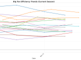 - Off Reb Pct (Offensive Rebounding): Currently ranked 319 of 365 in D1. Trending down strongly.