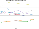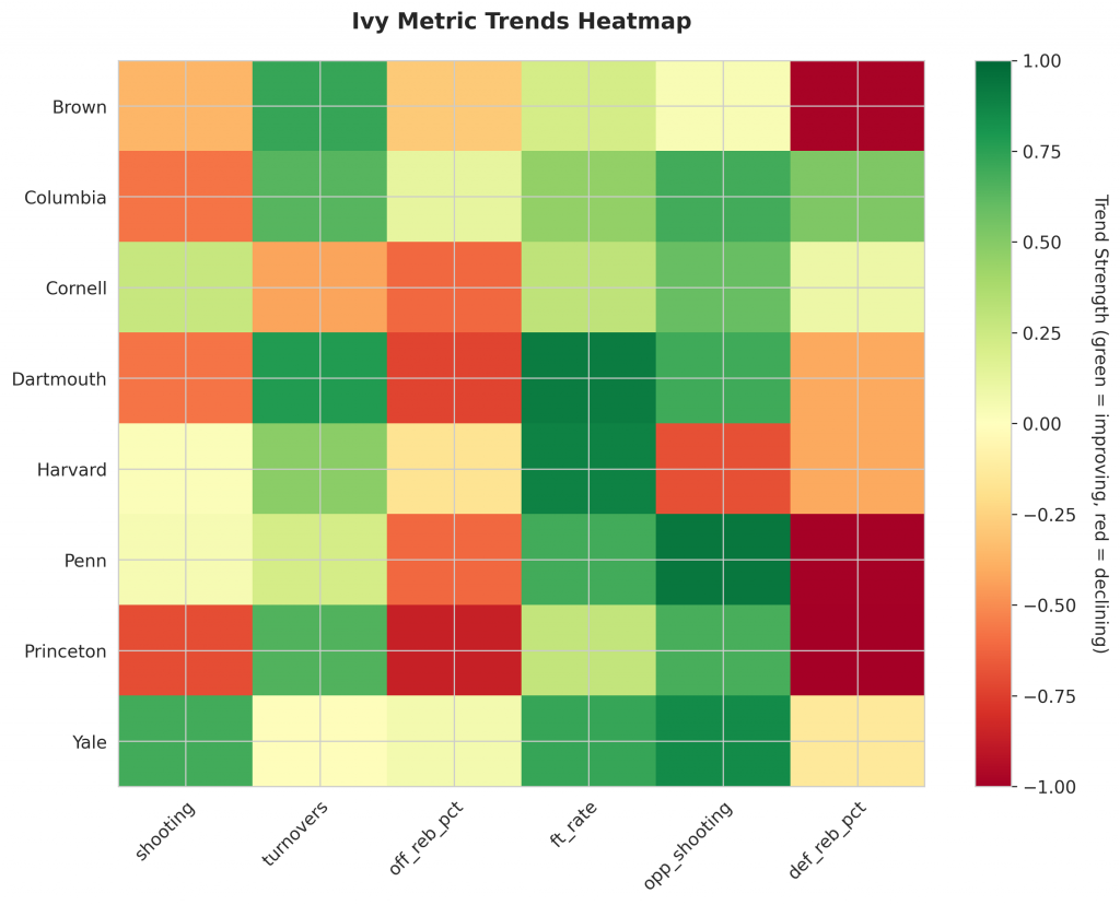 - Trending Up (Efficiency): Cornell, Harvard, Penn, Yale