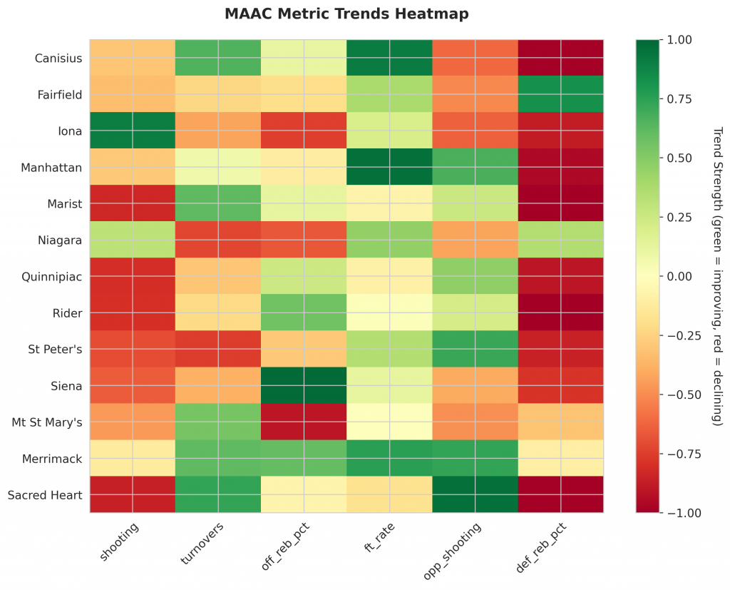 As MAAC teams continue their season, the MACD trending indicators will help identify which teams are genuinely improving versus those riding unsustainable momentum. Check back next week for updated analysis.