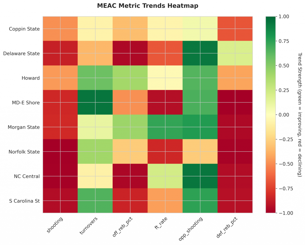 As MEAC teams continue their season, the MACD trending indicators will help identify which teams are genuinely improving versus those riding unsustainable momentum. Check back next week for updated analysis.