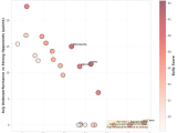 Figure 3: Scatter plot showing the relationship between overperformance against strong opponents (x-axis) and underperformance against weak opponents (y-axis). Bubble size and color indicate Dial-Up score magnitude. Top-right quadrant represents the biggest Dial-Up teams.