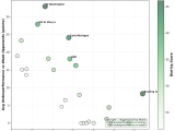 Figure 3: Scatter plot showing the relationship between overperformance against strong opponents (x-axis) and underperformance against weak opponents (y-axis). Bubble size and color indicate Dial-Up score magnitude. Top-right quadrant represents the biggest Dial-Up teams.