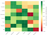 Figure 4: MACD trends heatmap showing which metrics are improving (green) or declining (red) for each team. Stronger colors indicate more pronounced trends.