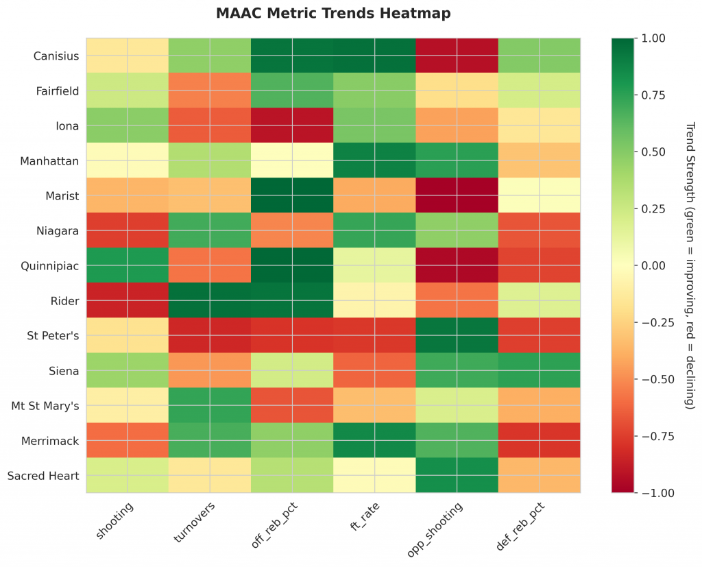As MAAC teams continue their season, the MACD trending indicators will help identify which teams are genuinely improving versus those riding unsustainable momentum. Check back next week for updated analysis.
