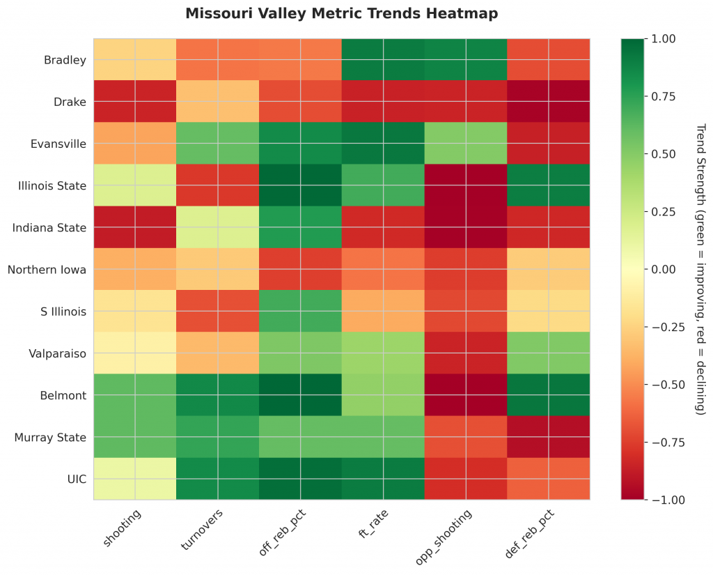 As Missouri Valley teams continue their season, the MACD trending indicators will help identify which teams are genuinely improving versus those riding unsustainable momentum. Check back next week for updated analysis.