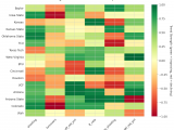 Figure 4: MACD trends heatmap showing which metrics are improving (green) or declining (red) for each team. Stronger colors indicate more pronounced trends.