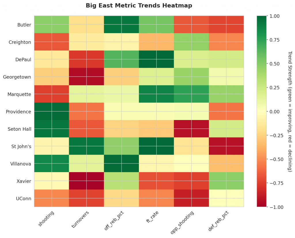 - Trending Up (Efficiency): Butler, Providence, Seton Hall, Villanova