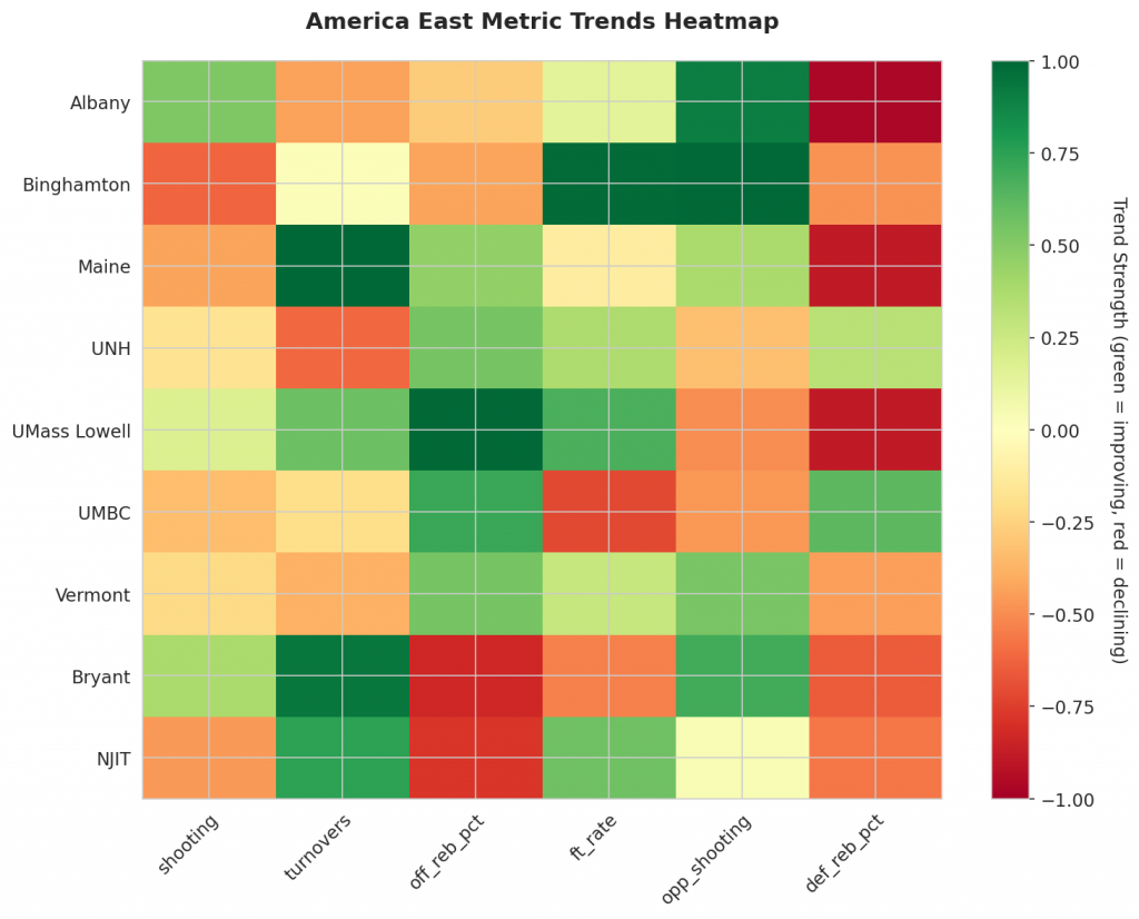 As America East teams continue their season, the MACD trending indicators will help identify which teams are genuinely improving versus those riding unsustainable momentum. Check back next week for updated analysis.