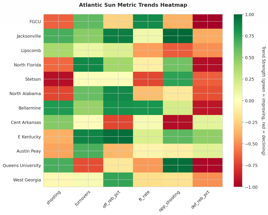 As Atlantic Sun teams continue their season, the MACD trending indicators will help identify which teams are genuinely improving versus those riding unsustainable momentum. Check back next week for updated analysis.