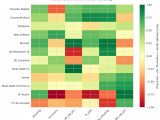 Figure 4: MACD trends heatmap showing which metrics are improving (green) or declining (red) for each team. Stronger colors indicate more pronounced trends.