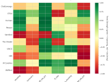 Figure 4: MACD trends heatmap showing which metrics are improving (green) or declining (red) for each team. Stronger colors indicate more pronounced trends.