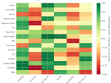 Figure 4: MACD trends heatmap showing which metrics are improving (green) or declining (red) for each team. Stronger colors indicate more pronounced trends.