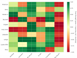 Figure 4: MACD trends heatmap showing which metrics are improving (green) or declining (red) for each team. Stronger colors indicate more pronounced trends.