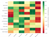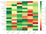 Figure 4: MACD trends heatmap showing which metrics are improving (green) or declining (red) for each team. Stronger colors indicate more pronounced trends.