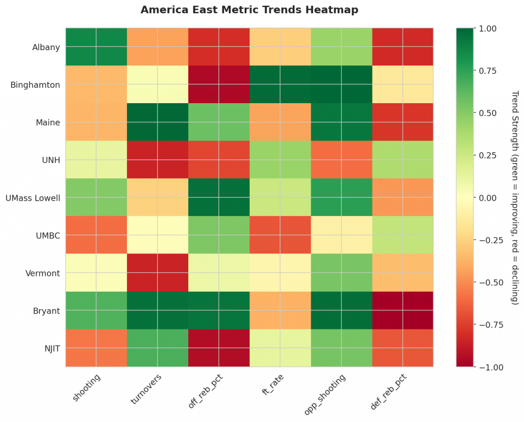 As America East teams continue their season, the MACD trending indicators will help identify which teams are genuinely improving versus those riding unsustainable momentum. Check back next week for updated analysis.