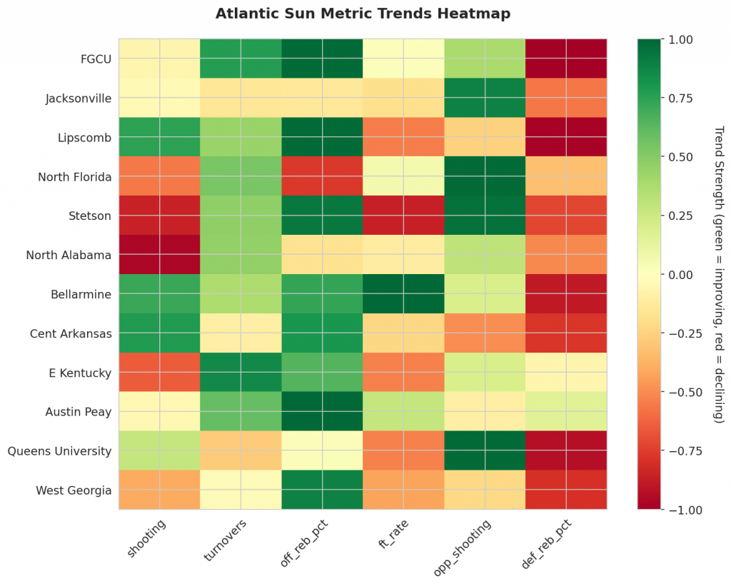 As Atlantic Sun teams continue their season, the MACD trending indicators will help identify which teams are genuinely improving versus those riding unsustainable momentum. Check back next week for updated analysis.