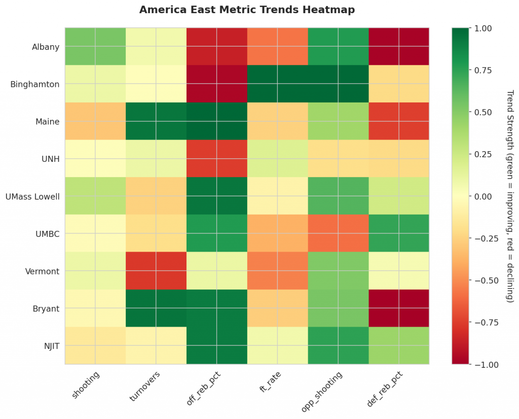 As America East teams continue their season, the MACD trending indicators will help identify which teams are genuinely improving versus those riding unsustainable momentum. Check back next week for updated analysis.