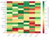 Figure 4: MACD trends heatmap showing which metrics are improving (green) or declining (red) for each team. Stronger colors indicate more pronounced trends.
