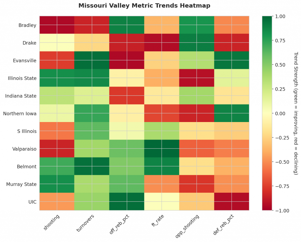 As Missouri Valley teams continue their season, the MACD trending indicators will help identify which teams are genuinely improving versus those riding unsustainable momentum. Check back next week for updated analysis.