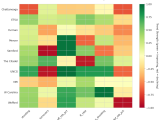 Figure 4: MACD trends heatmap showing which metrics are improving (green) or declining (red) for each team. Stronger colors indicate more pronounced trends.