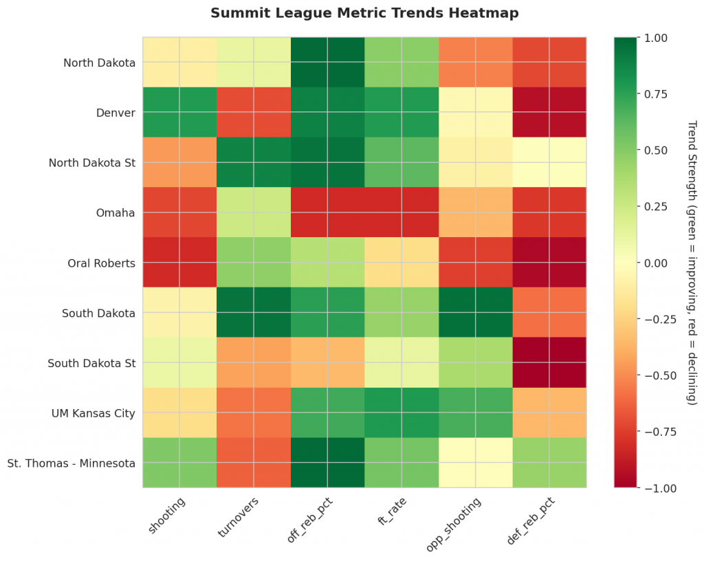 As Summit League teams continue their season, the MACD trending indicators will help identify which teams are genuinely improving versus those riding unsustainable momentum. Check back next week for updated analysis.