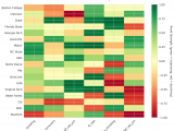Figure 4: MACD trends heatmap showing which metrics are improving (green) or declining (red) for each team. Stronger colors indicate more pronounced trends.