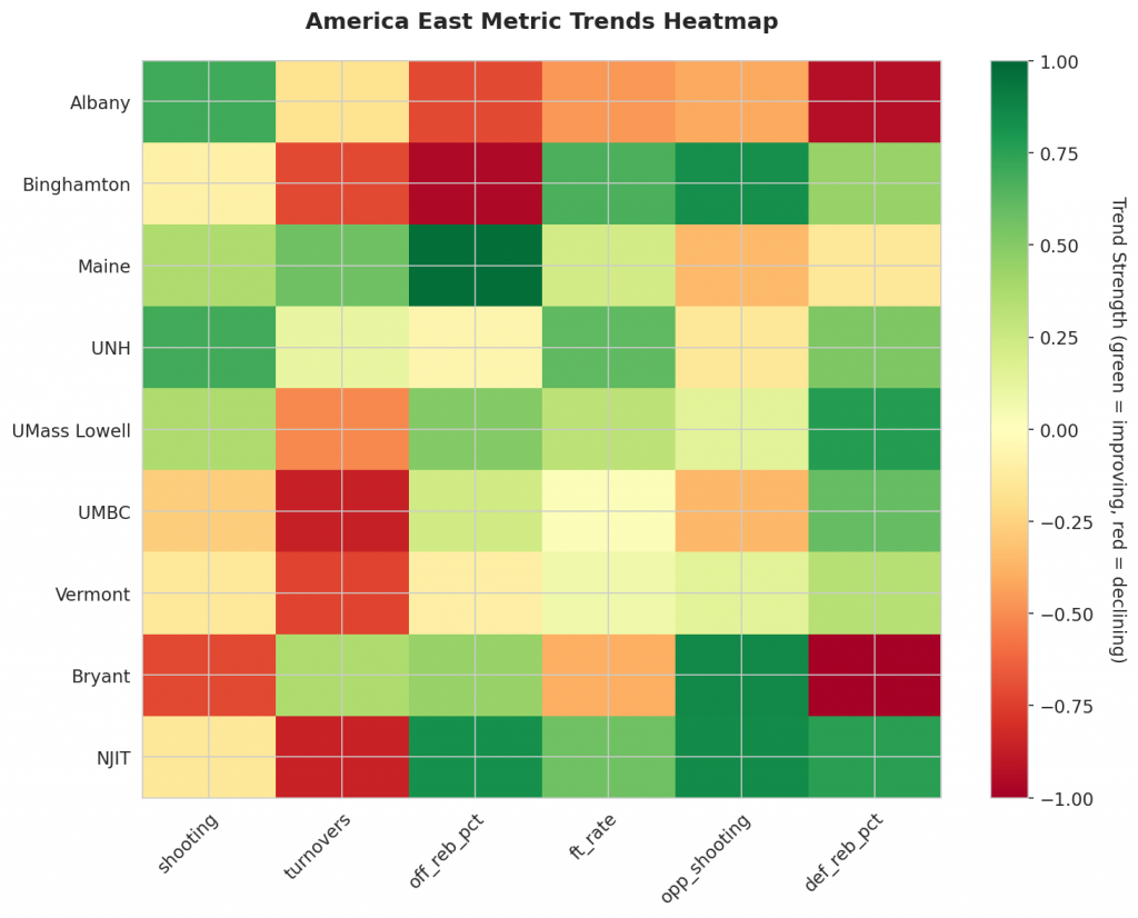 As America East teams continue their season, the MACD trending indicators will help identify which teams are genuinely improving versus those riding unsustainable momentum. Check back next week for updated analysis.