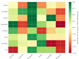 Figure 4: MACD trends heatmap showing which metrics are improving (green) or declining (red) for each team. Stronger colors indicate more pronounced trends.