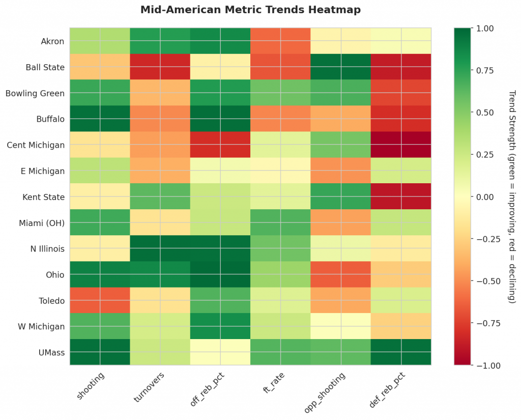 - Trending Up (Efficiency): Akron, Bowling Green, Buffalo, E Michigan, Miami (OH)