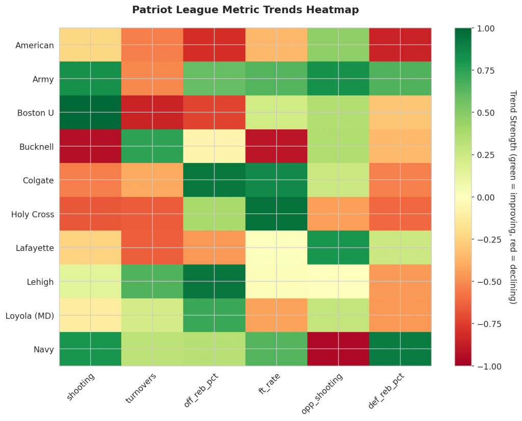 As Patriot League teams continue their season, the MACD trending indicators will help identify which teams are genuinely improving versus those riding unsustainable momentum. Check back next week for updated analysis.