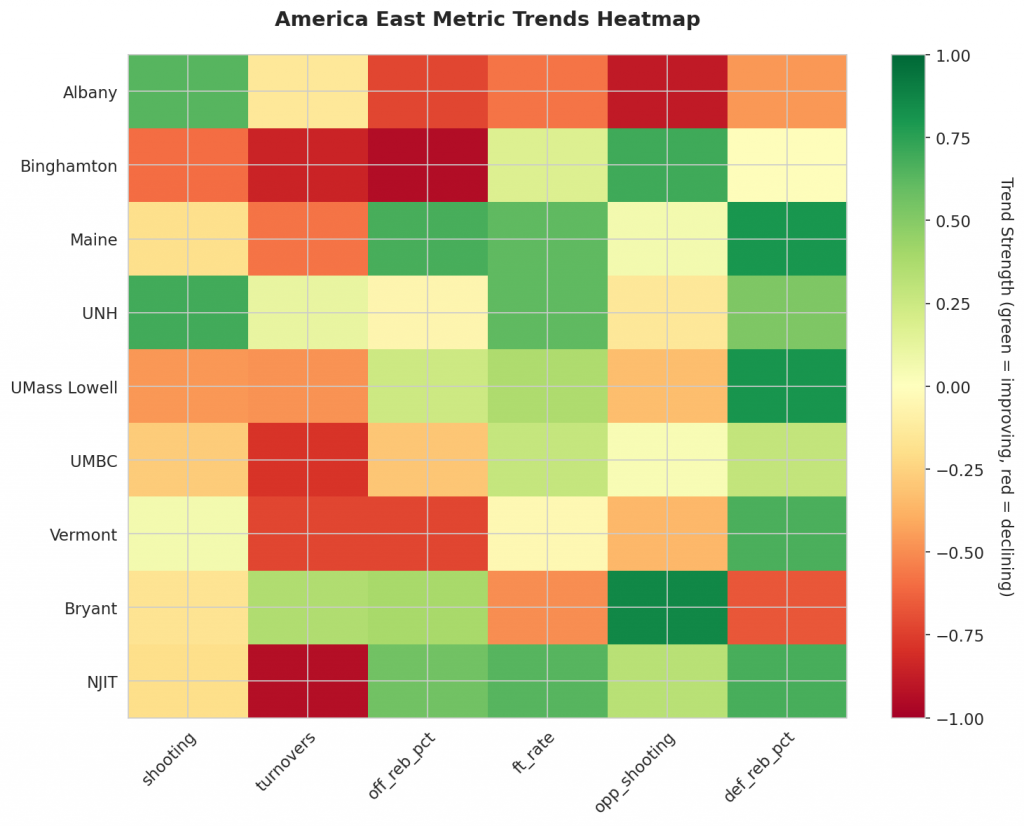 As America East teams continue their season, the MACD trending indicators will help identify which teams are genuinely improving versus those riding unsustainable momentum. Check back next week for updated analysis.