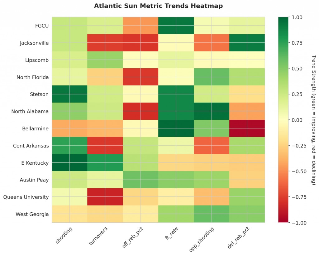 As Atlantic Sun teams continue their season, the MACD trending indicators will help identify which teams are genuinely improving versus those riding unsustainable momentum. Check back next week for updated analysis.