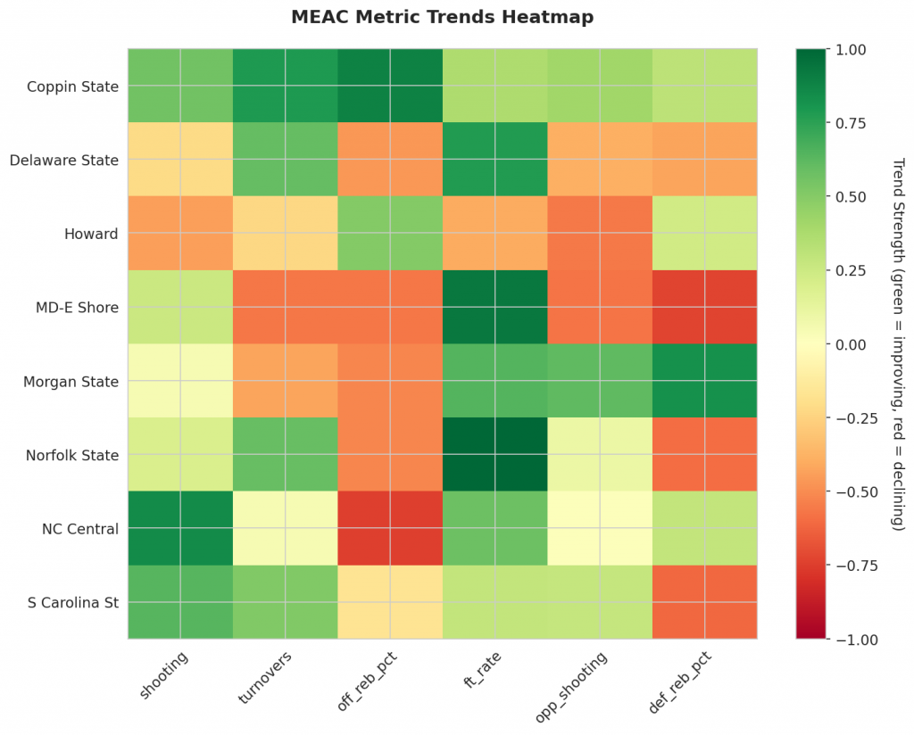 - Trending Up (Efficiency): Coppin State, MD-E Shore, Morgan State, Norfolk State, NC Central