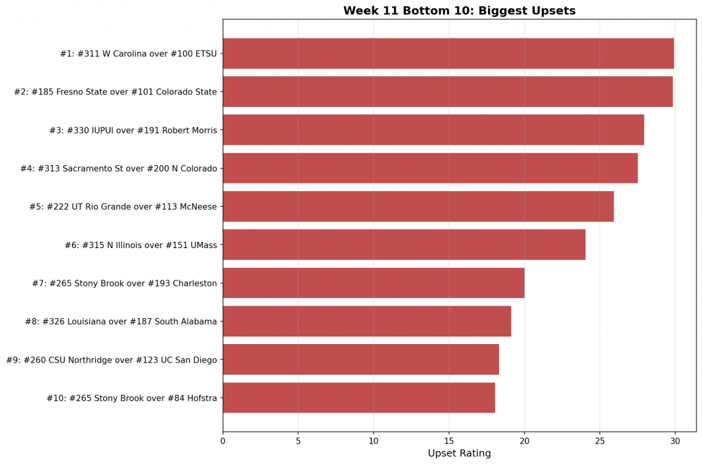 Week 11 Bottom 10: The Biggest Upsets
