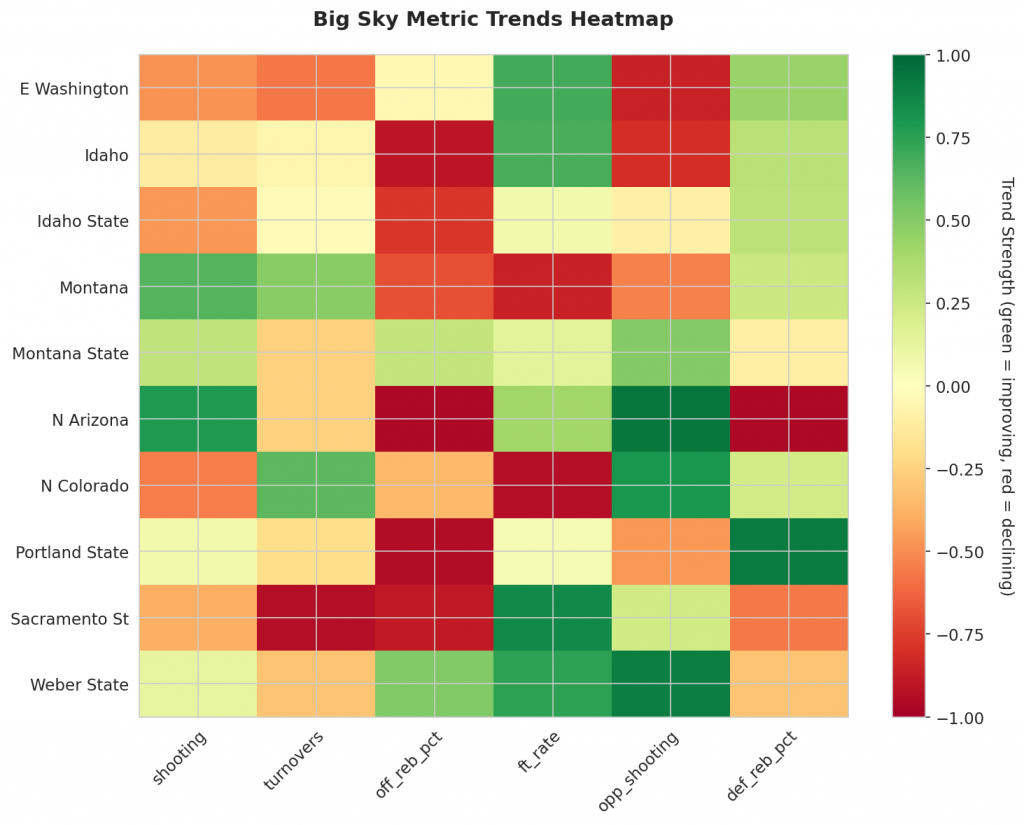 - Trending Up (Efficiency): Montana, Montana State, N Arizona, Portland State, Weber State