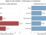 Dial-Up Metrics: Exceeded projections by 38.5 total points against strong opponents (3 games); underperformed by 64.5 points against weak competition (4 games).