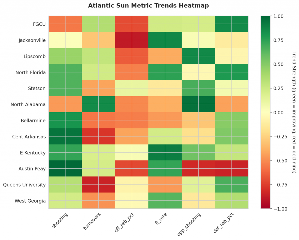 As Atlantic Sun teams continue their season, the MACD trending indicators will help identify which teams are genuinely improving versus those riding unsustainable momentum. Check back next week for updated analysis.