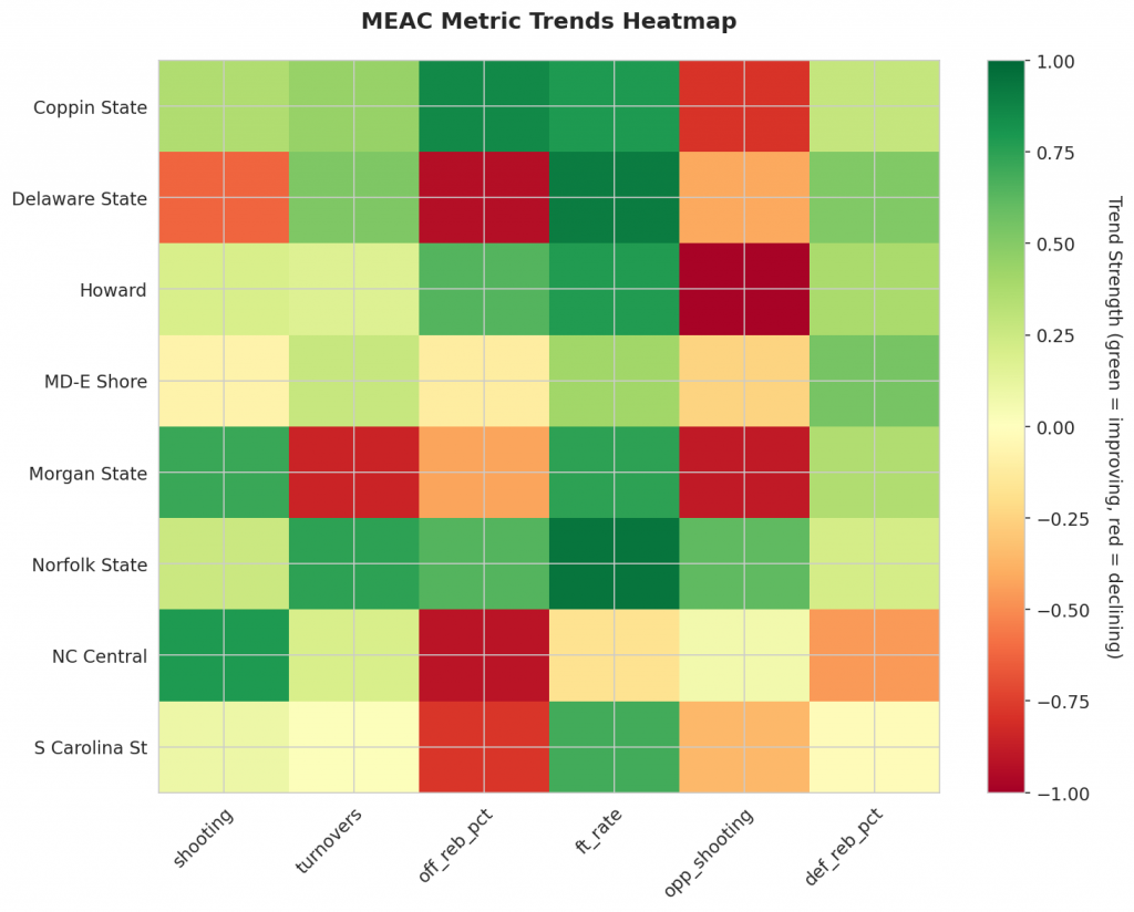 - Trending Up (Efficiency): Coppin State, Howard, Morgan State, Norfolk State, NC Central