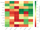 Figure 4: MACD trends heatmap showing which metrics are improving (green) or declining (red) for each team. Stronger colors indicate more pronounced trends.
