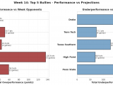 Dial-Up Metrics: Exceeded projections by 32.9 total points against strong opponents (2 games); underperformed by 30.1 points against weak competition (2 games).