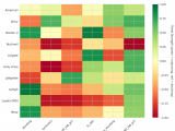 Figure 4: MACD trends heatmap showing which metrics are improving (green) or declining (red) for each team. Stronger colors indicate more pronounced trends.
