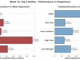 Dial-Up Metrics: Exceeded projections by 27.2 total points against strong opponents (2 games); underperformed by 87.8 points against weak competition (5 games).