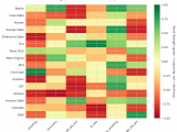 Figure 4: MACD trends heatmap showing which metrics are improving (green) or declining (red) for each team. Stronger colors indicate more pronounced trends.