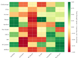 Figure 4: MACD trends heatmap showing which metrics are improving (green) or declining (red) for each team. Stronger colors indicate more pronounced trends.