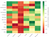 Figure 4: MACD trends heatmap showing which metrics are improving (green) or declining (red) for each team. Stronger colors indicate more pronounced trends.
